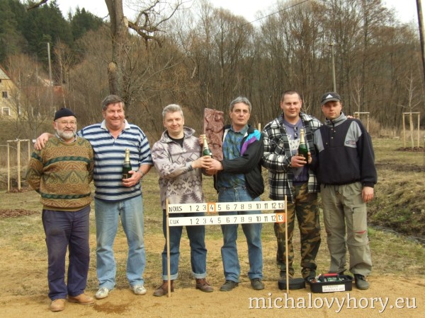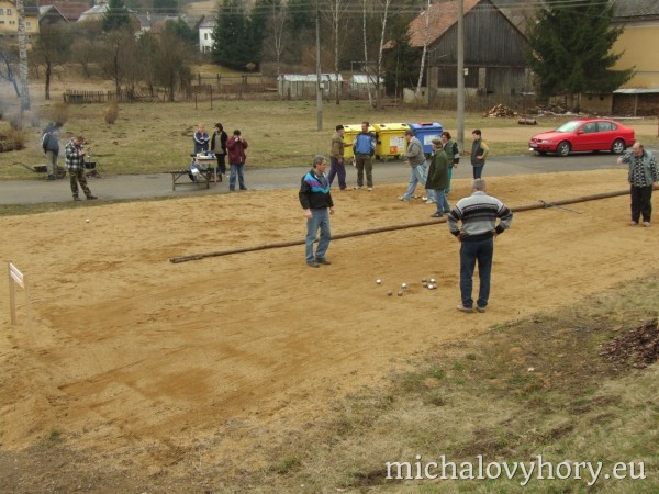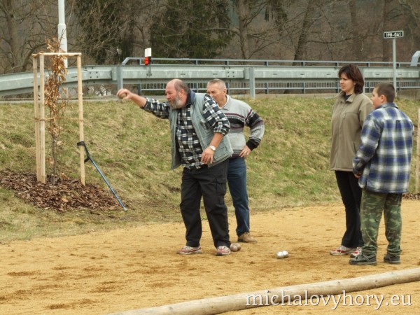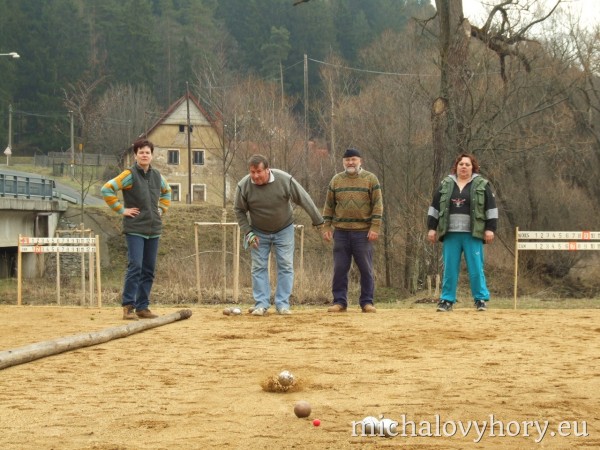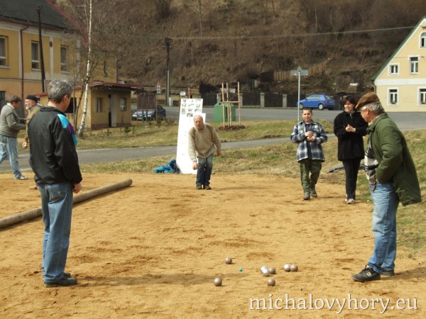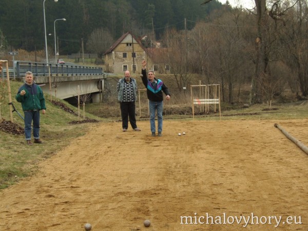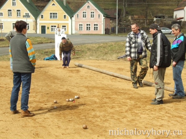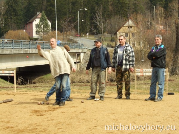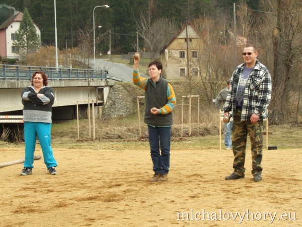 V sobotu 15.4.2006 se v Michalových Horách konal 2. ročník Velikonočního turnaje pétanque dvojic. Turnaje se zůčastnilo osm dvojic. Přívítali jsme družstvo reprezentantů Chodové Plané, manžele Batrlovi. Počasí účastníkům přálo i atmosféra byla velmi přátelská, ostatně jako vždy. Obhájci loňského vítězství, Tinl-Dzuba, byli tentokráte poraženi nadějnou dvojicí Kadlečík - Stolín. Těmto vítězům gratulujeme a těšíme se na další napínavé turnaje.
