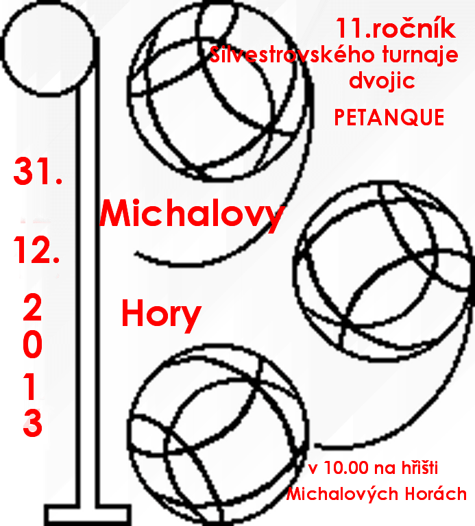 Zveme všechny příznivce PETANQU na náš 11.ročník Silvestrovského turnaje. Sejdeme se 31.12.2013 na hřišti v Michalových Horach v 10.00 hod. Občerstvení zajištěno.